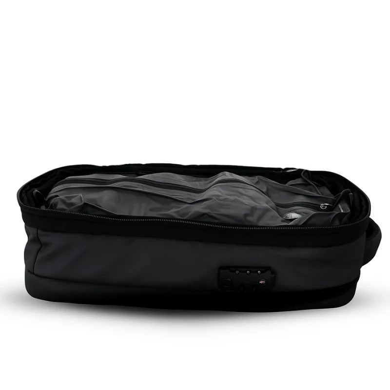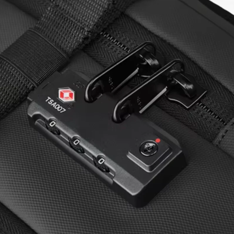 Voyagez en toute tranquillité avec l'AeroSac, équipé d’un cadenas approuvé par la TSA, garantissant la sécurité de vos affaires tout en facilitant les contrôles en aéroport.