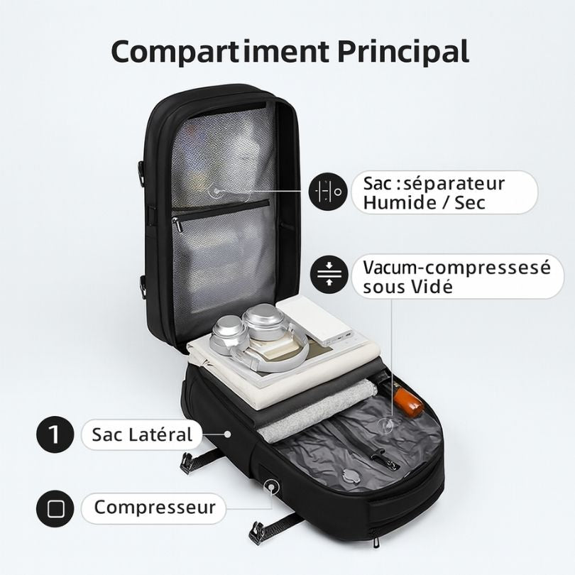 Le système de compression sous vide AeroSac est simple à utiliser et fonctionne partout grâce à sa pompe portable. Où que vous soyez, vous pouvez réduire le volume en quelques secondes. À la maison, un aspirateur fait aussi l’affaire.